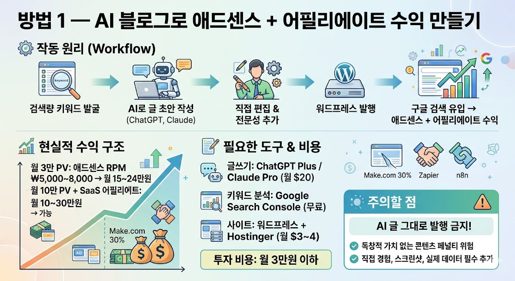 방법 1 — AI 블로그로 애드센스 + 어필리에이트 수익 만들기