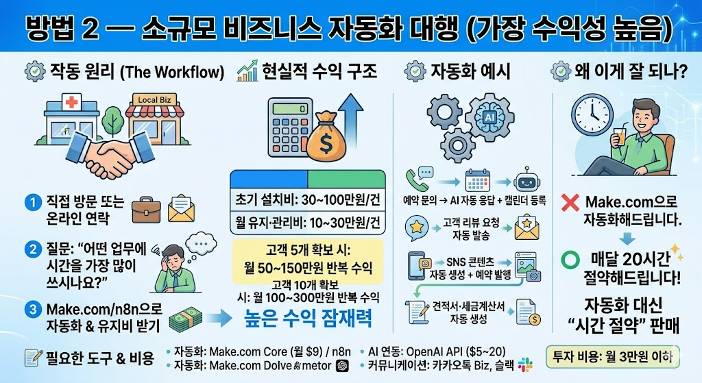 방법 2 — 소규모 비즈니스 자동화 대행 (가장 수익성 높음)