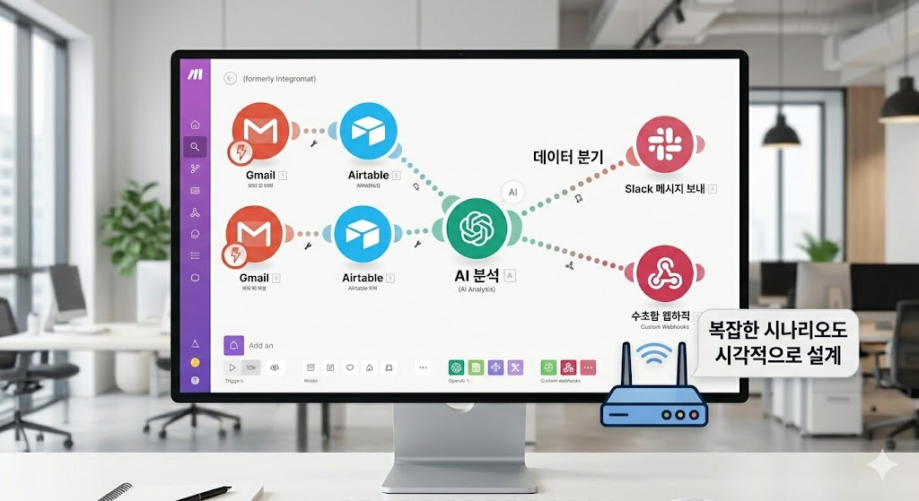 학습 곡선이 Zapier보다 가파르다. 라우터, 필터, 어그리게이터 같은 개념을 이해해야 복잡한 시나리오를 만들 수 있다. 처음 익숙해지는 데 2~3시간 정도 투자가 필요하다.